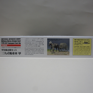 本品は、弾丸や食料などを運搬する木製の荷馬車、三九式輜重車、兵士1体、各種荷物、荷物を覆うカバーのセット商品です。